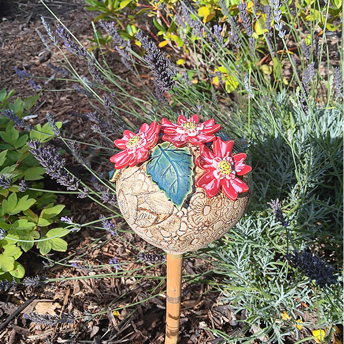 Ich habe die Kugel bei 1250 Grad gebrannt und somit ist sie frostfest und kann auch im Winter Ihren