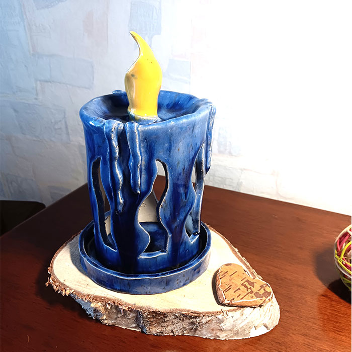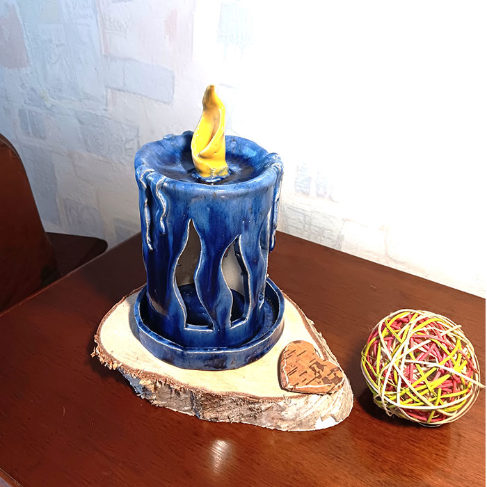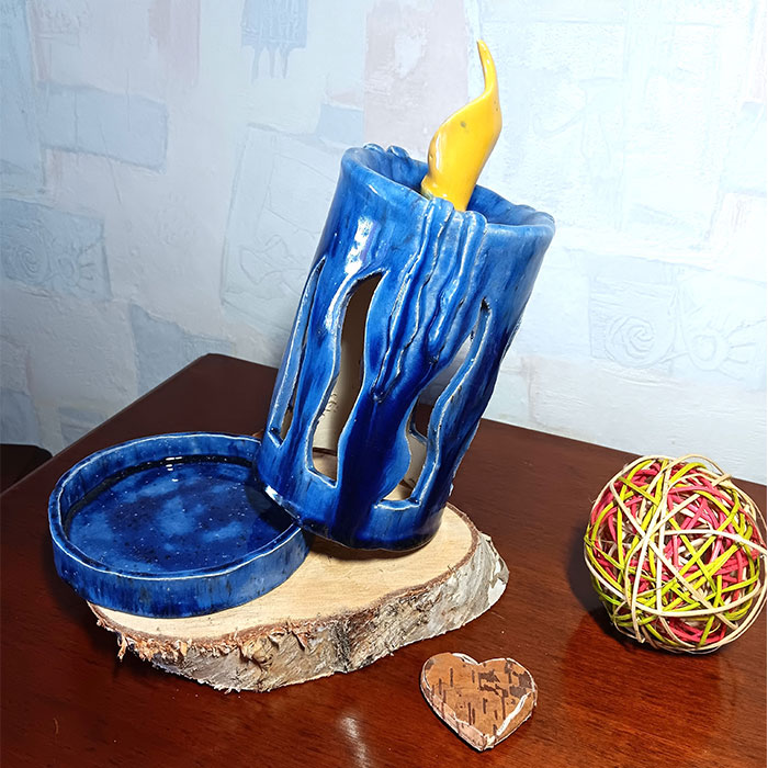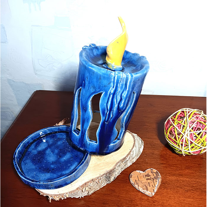 Ich habe die Kerze in einem kräftigen Blau glasiert und bei 1050 C gebrannt. Sie ist für alle Jahreszeiten