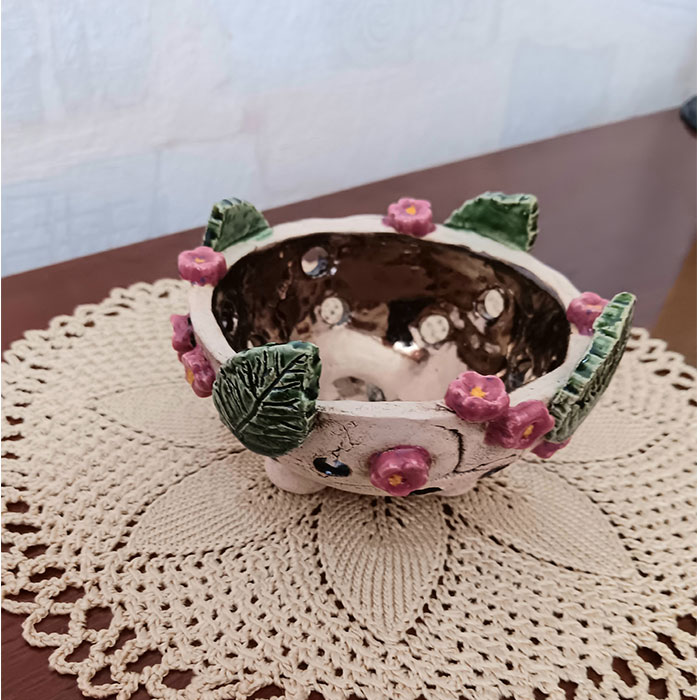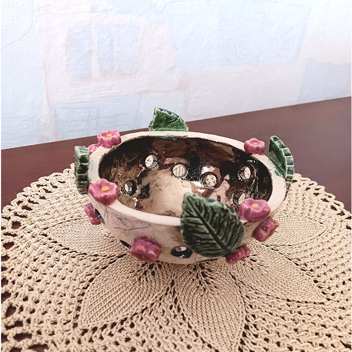 Blüten und Blättchen angesetzt und sieht durch die Farbgebung etwas verspielt aus. Die bronzene